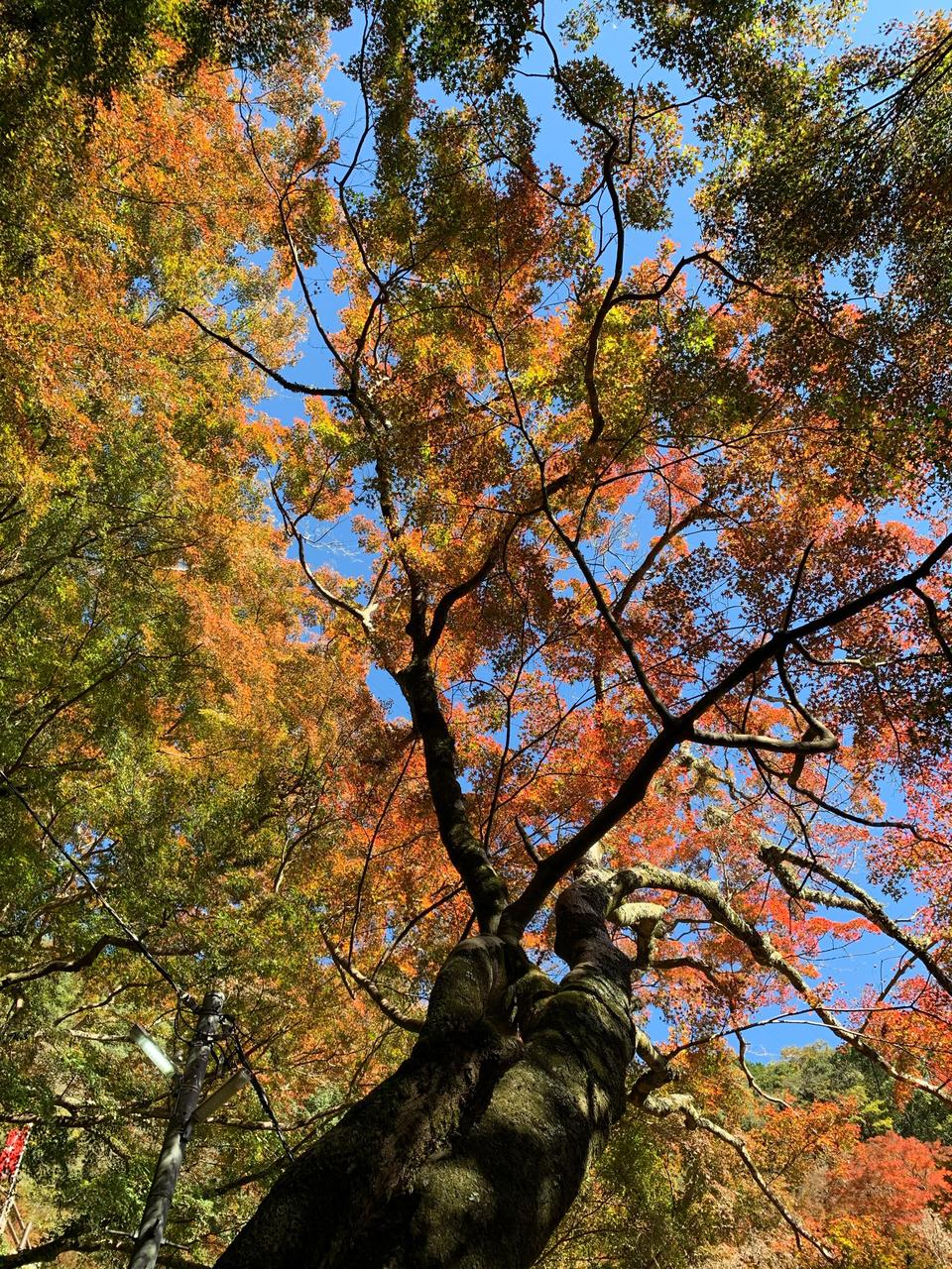 高さ60mから垂直に落下する雌滝を下から撮影する