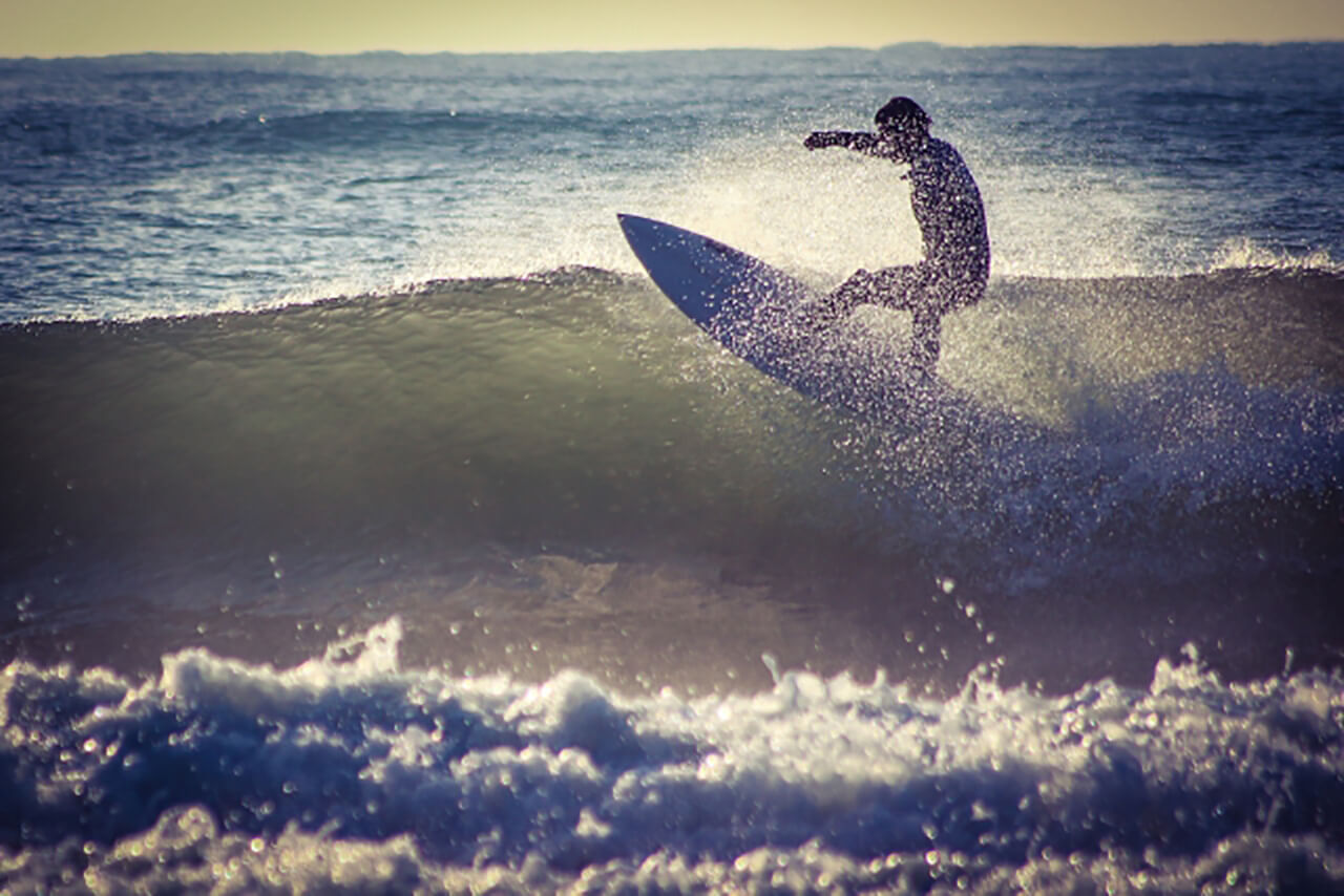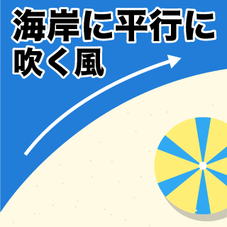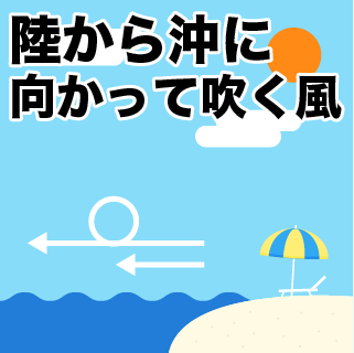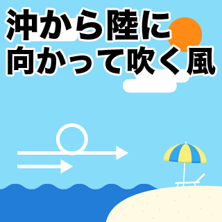 サーフィンでは、一般的に、沖からくる波に対して風が逆向きに吹くことで波の形が整えられ崩れにくくなるため、陸から沖に向かって吹く風が好まれます。この風はオフショア(岸[shore]から離れる[off])の風と呼ばれます。