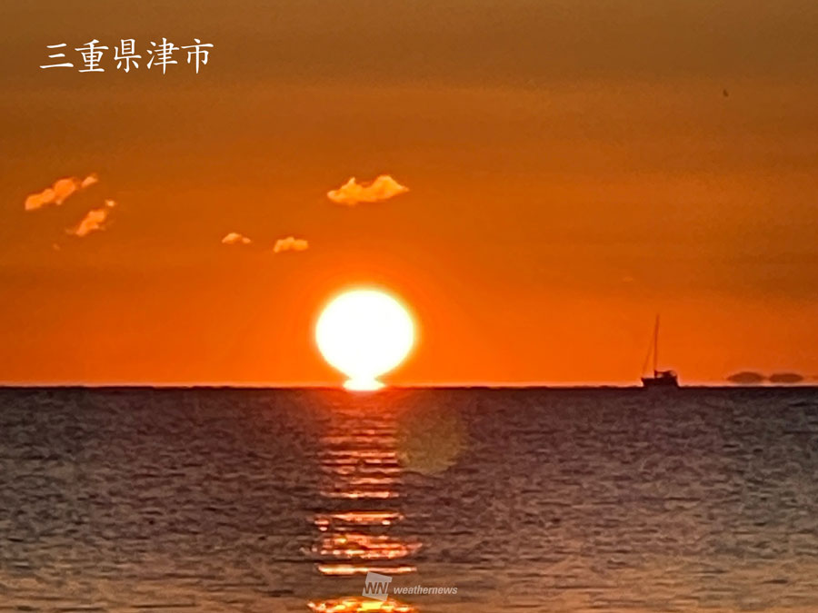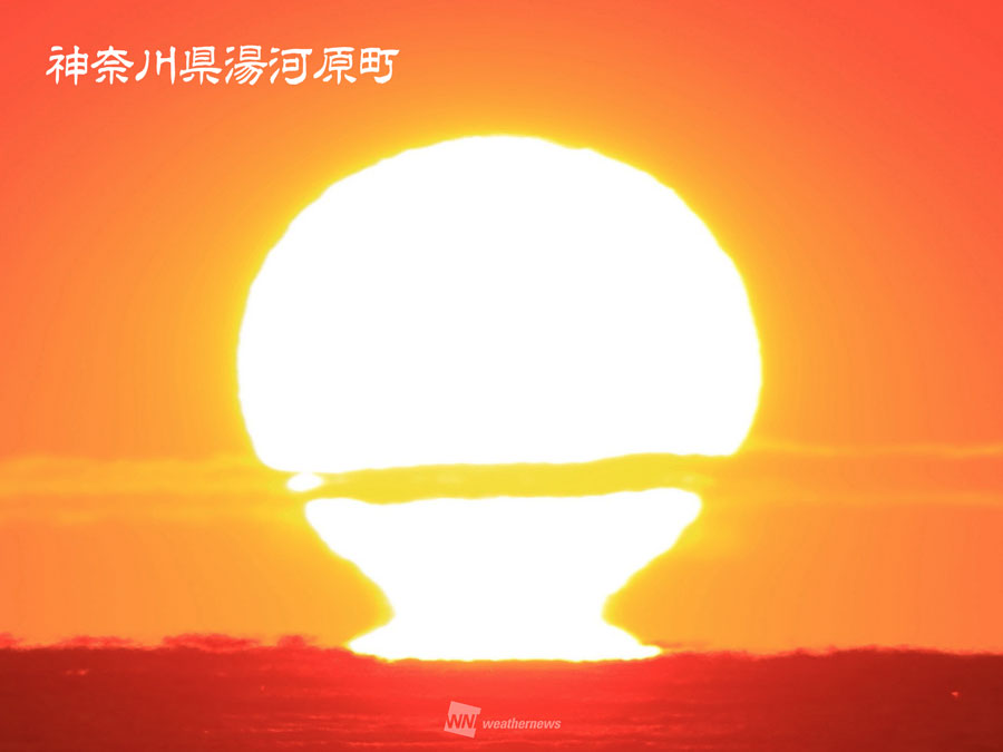 縁起良く「だるま初日の出」登場 蜃気楼の一種
