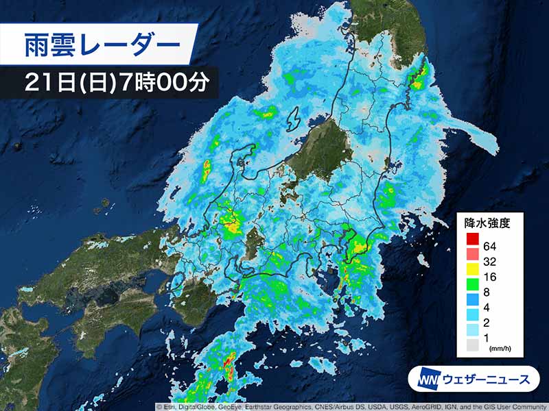 紀伊半島周辺では昨夜から雨が強まっていて、三重県紀北町のアメダス紀伊長島では、1時間に40.5mmの激しい雨を観測しました。三重県内で総雨量が180mmを超えるなど、この時期としては雨量が多くなっています。