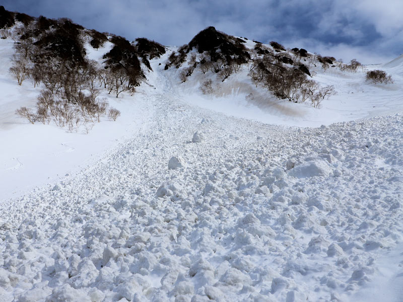 一方の全層雪崩は、気温の上昇によって積雪と地面との間に雪解け水が流れたり、ザラメ状のもろい雪の層ができたりすることなどにより、古い積雪と新雪を合わせた硬くて重い雪の層全体が地表面を滑り落ちる現象で、暖かくなった春先などに起こりやすいことが特徴です。