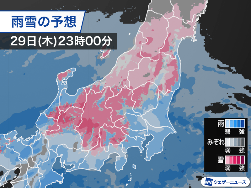 今夜から明日朝にかけては関東甲信の山沿いを中心に湿った雪が降り、多い所では10〜20cmの雪が新たに積もる見込みです。明日朝の通勤や通学の前に除雪が必要になる所がありますので、普段よりも早めに準備をするようにしてください。
