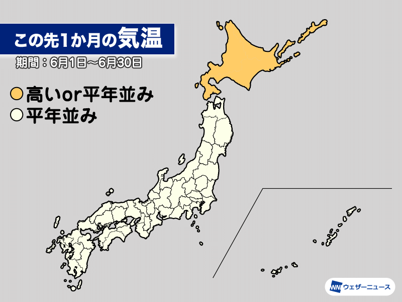東北から九州、沖縄にかけ、1か月を通した気温はほぼ平年並みの見込みですが、6月の前半と後半で傾向は変わりそうです。