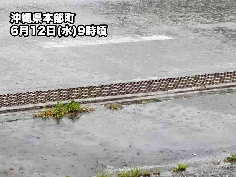 今日12日(水)は梅雨前線が本州の南の海上に停滞し、梅雨前線に近い南西諸島では未明から断続的に雨が降っています。大雨による道路冠水や河川・用水路の氾濫に警戒が必要です。