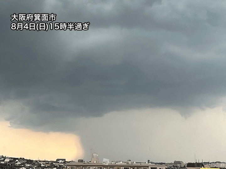 今日4日(日)は大気の状態が不安定で、午後になり西日本、東日本の広い範囲で雲が発達してきました。近畿や四国で雷雲が目立ち、そのほかのエリアでも局地的には激しい雨になっています。
