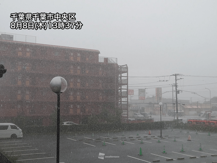 特に千葉市や市原市などで雨雲の発達が目立ち、一部では雷を伴って強く降っています。