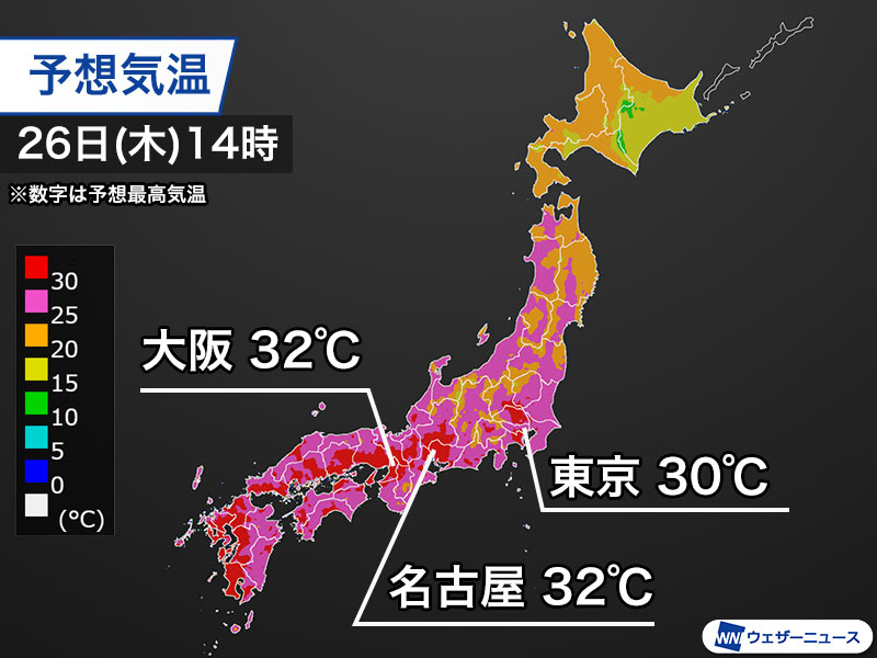 西日本は32℃前後まで気温上昇
