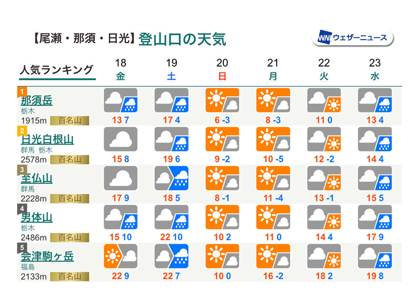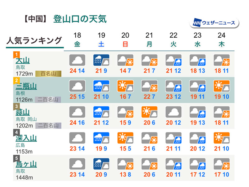 今週末の山の天気