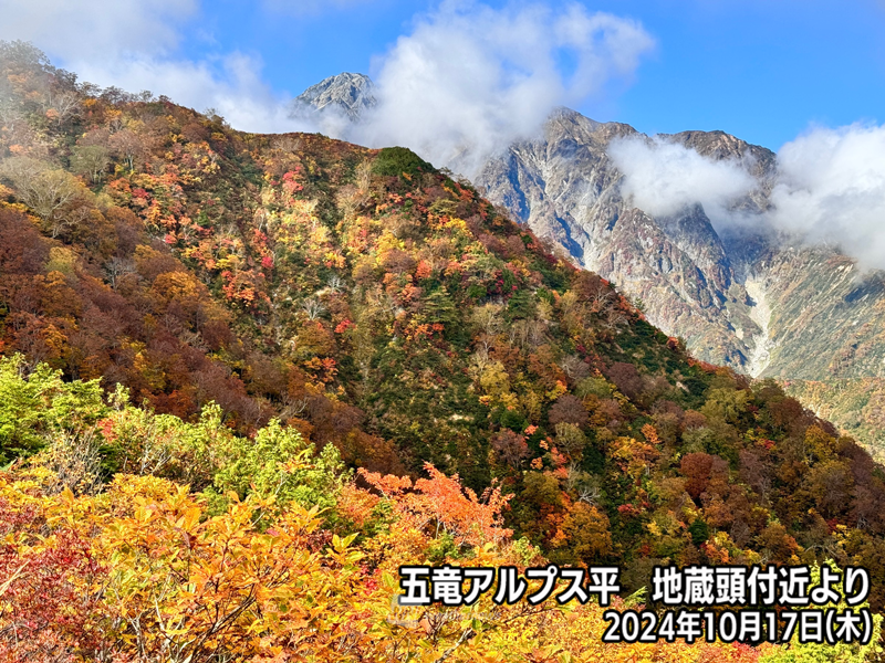 日中は次第に風が弱まり天気は回復傾向ですが、谷川岳、北アルプス北部や南アルプス周辺、大台ヶ原など太平洋側の山岳では雲が多くなる可能性があります。
