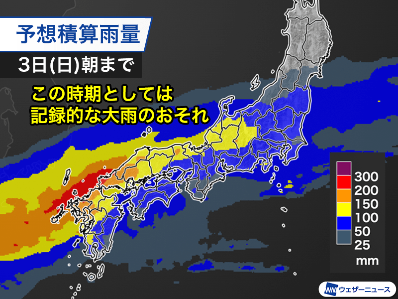 三連休の序盤は季節外れの大雨警戒 台風の影響で前線活発に