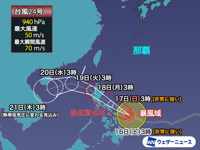 強い台風24号(マンニィ)は非常に強い勢力に