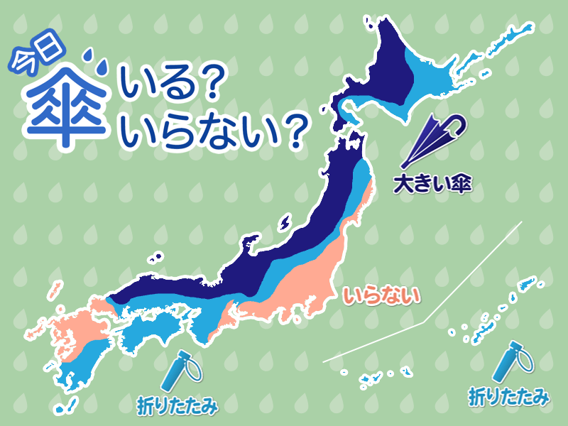 ただ、近畿や瀬戸内の周辺では午後も雨の心配があるので、お出かけの際には折りたたみ傘があると安心です。