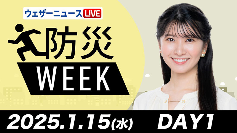 ウェザーニュースでは気象情報番組「ウェザーニュース LiVE」にて2025年1月15日(水)〜17日(金)にかけて「防災WEEK」を実施。阪神淡路大震災を教訓に地震災害への意識を高め、期間を通して最新の防災や減災について皆さんに参加してもらいながら一緒に学び、考えていきます。