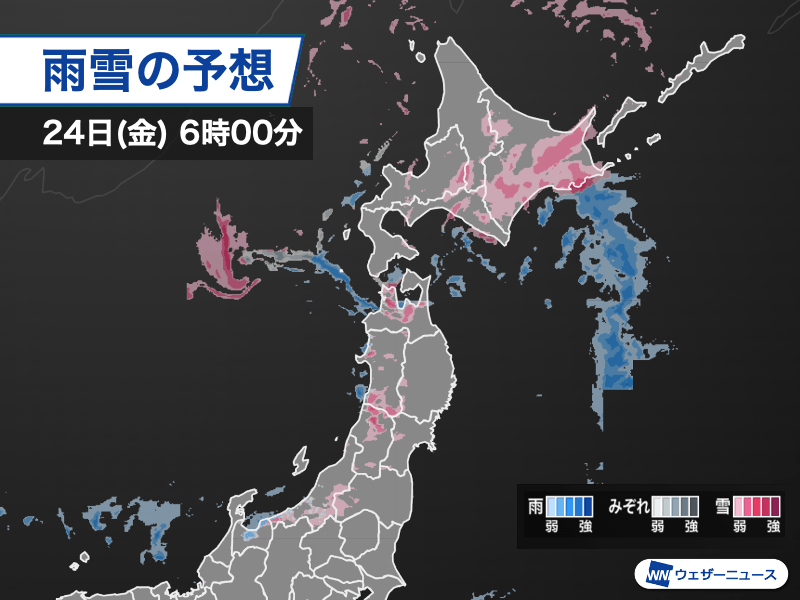 低気圧が接近する北海道は、道南や道東を中心に雪や雨が降りやすくなります。特に朝は道東の太平洋側で雪の強まりに注意が必要です。帯広市など、平地でも積雪のおそれがあります。