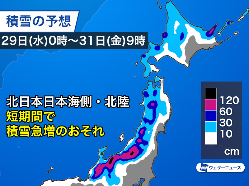 短期間で積雪急増のおそれ