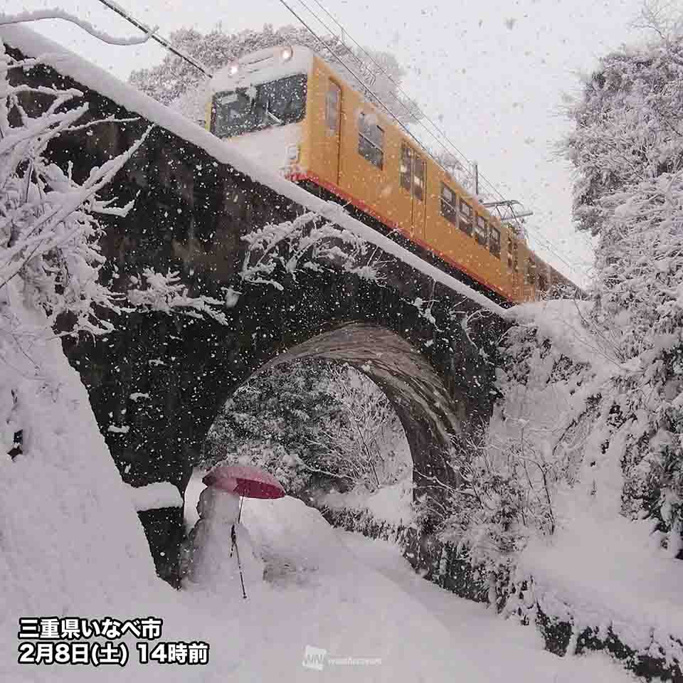 7日(金)夜〜8日(土)には名神・新名神・名阪が通行止めとなり東西の道路交通が遮断され、滋賀県彦根市では27cm、アメダス積雪深計のない三重県四日市市では20cmの積雪が観測されました。