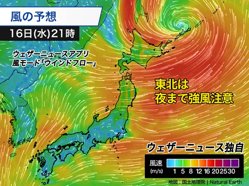 東北地方は夜まで強風が続く