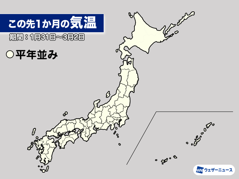 1か月の平均気温では全国的に平年並みの予想となっています。ただ、短期的には寒暖の差が非常に大きくなり、真冬を思わせる寒さが戻ったり、春のような暖かさになったりする見込みです。