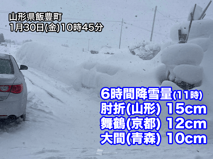 西日本の日本海側では今日いっぱい、北陸から北日本の日本海側では明日31日(土)の午前中にかけて雪の強まりやすい状況が続く見通しです。
