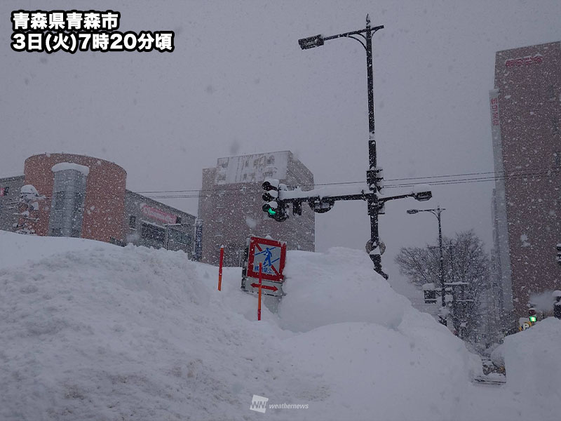 午前9時時点の積雪深は青森で176cm、札幌で99cmです。青森県の野辺地(116cm)、秋田県の鷹巣(145cm)や鹿角(146cm)では観測史上最大の積雪深となっています。