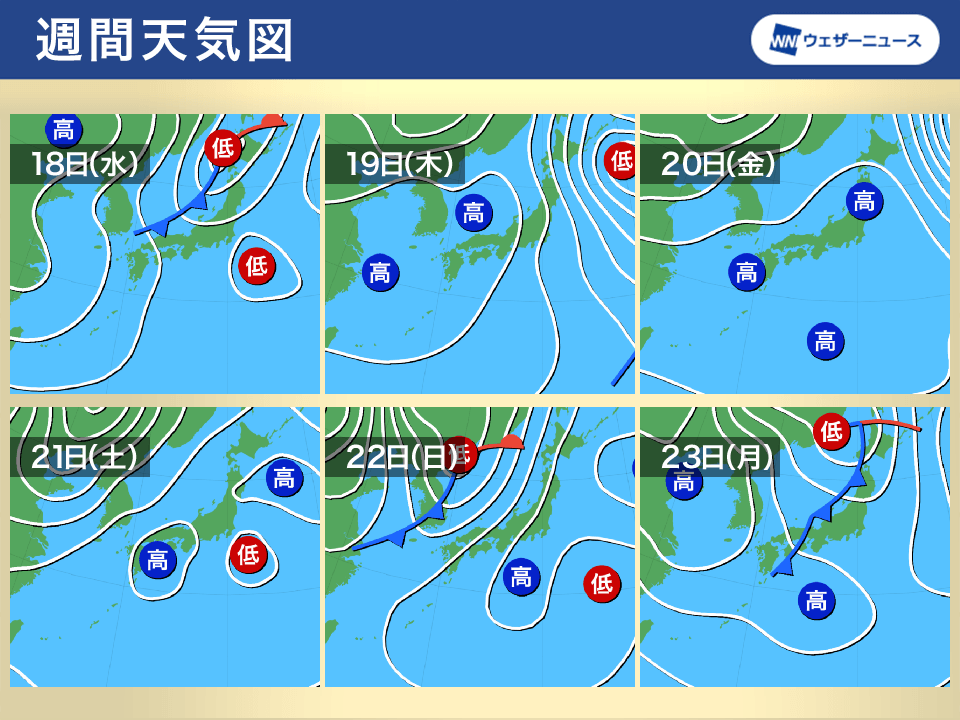 18日(水)は北日本で荒天のおそれ 三連休は再び気温上昇