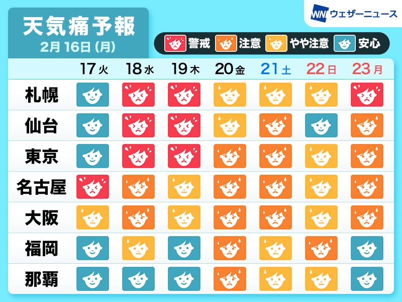 天気痛を持っている方にとっては不調が出やすい1週間となる見込みです。