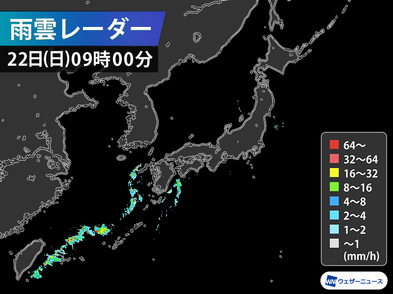午前中から東シナ海上や四国沖の太平洋で雨雲が局地的に発達していて、一部は発雷も検知しています。
