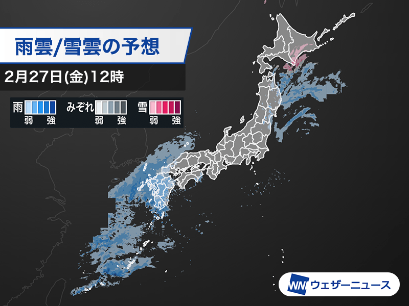 西日本は雨が降り出す 関東は雲が多めも気温上昇