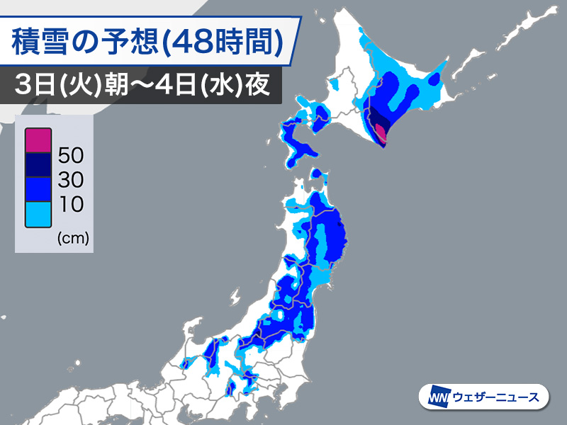 関東や東北は大雪のおそれ