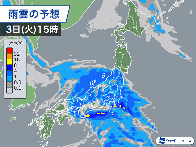 西日本、東日本太平洋側は強雨注意