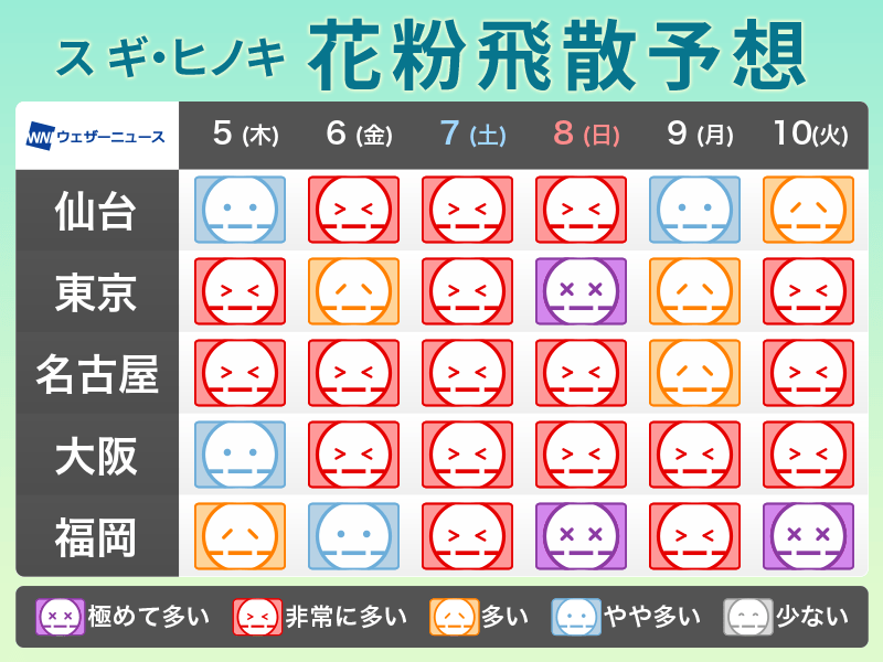 金曜から土曜は広範囲で雨 スギ花粉の大量飛散に注意
