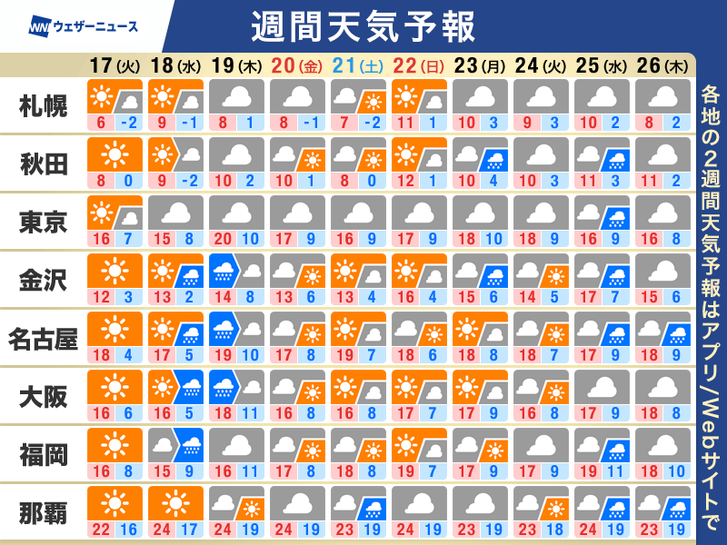 週間天気予報 週中頃は広い範囲で雨 三連休は桜開花進む