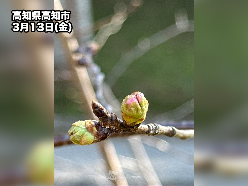 西日本や東日本では生長が進み、「半分以上が緑に」や「先がピンクに」以上のつぼみも増えています。
