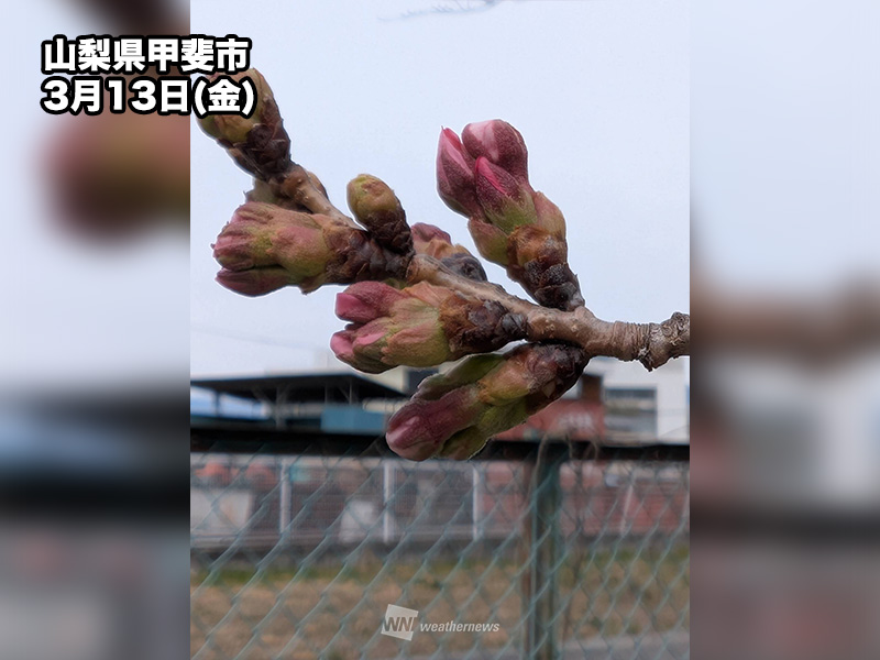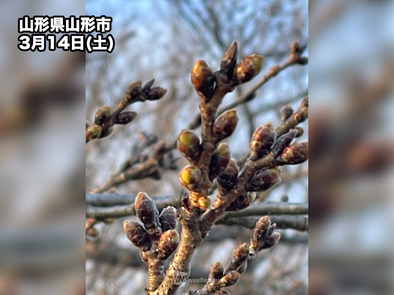 今後も天気は周期変化しますが、晴れて暖かい日が増える予想です。春の陽気によりつぼみの生長が進むとみています。暖かさに誘われて「花びらが見えた」以上に変化し、桜のつぼみは開花に向けて生長を加速させそうです。