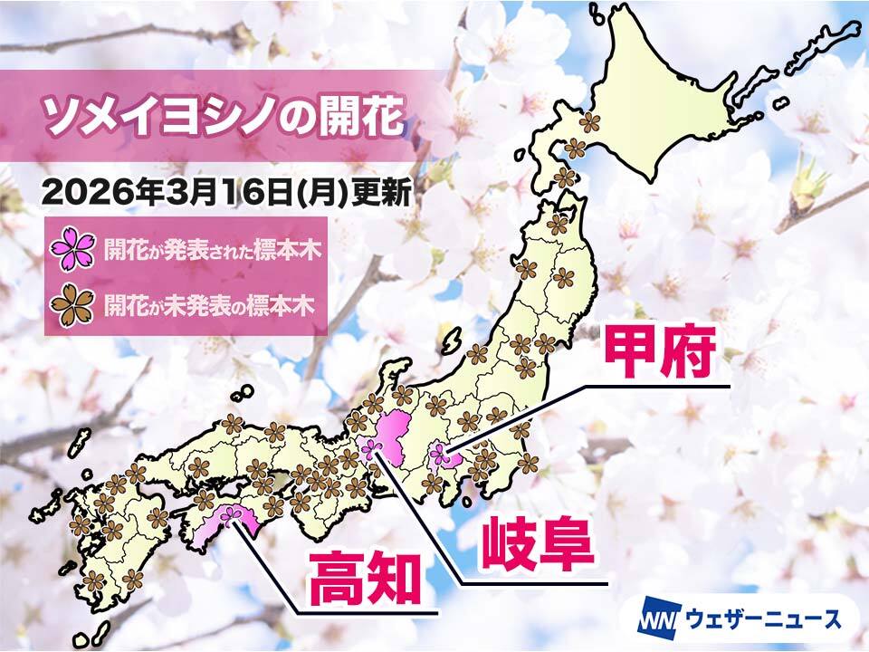 甲府でもソメイヨシノが開花 歴代最早での開花発表に