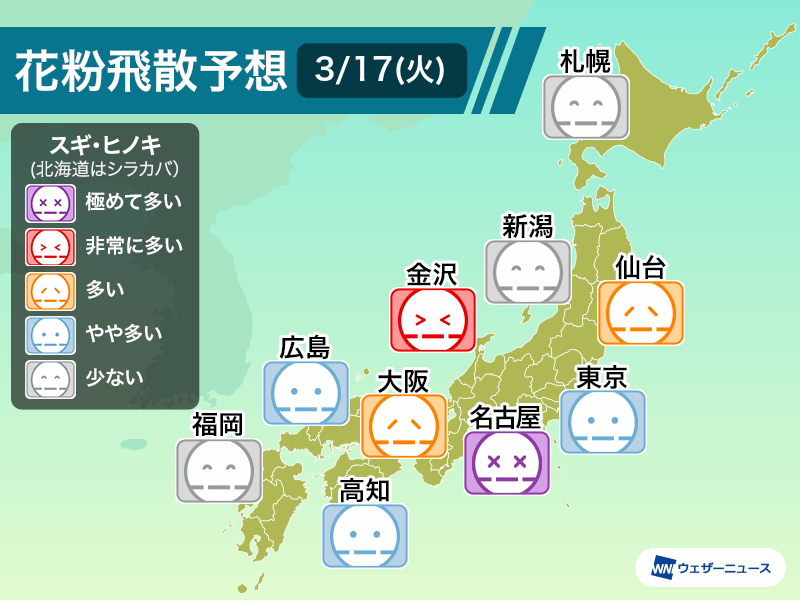 今日3月17日(火)の天気予報