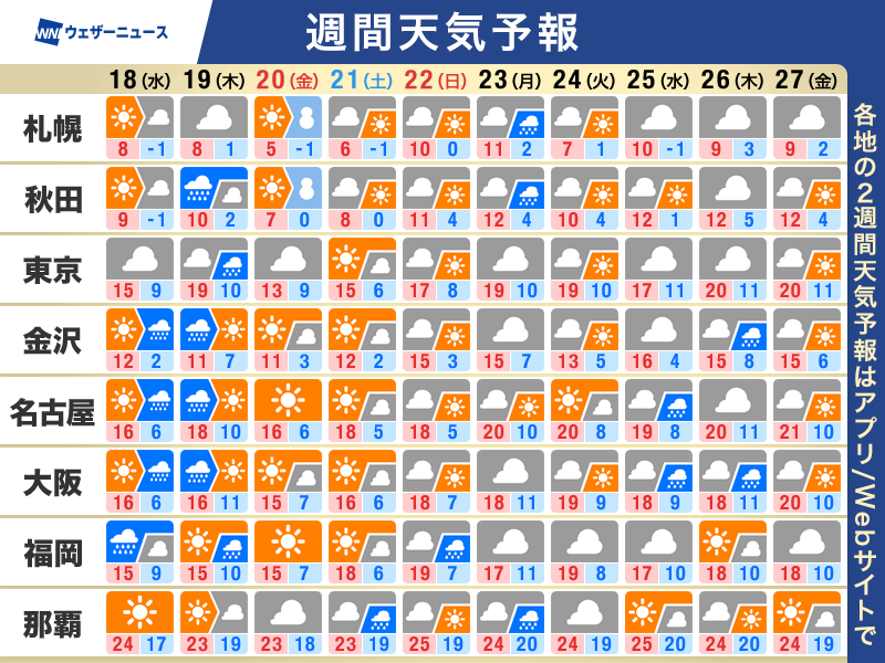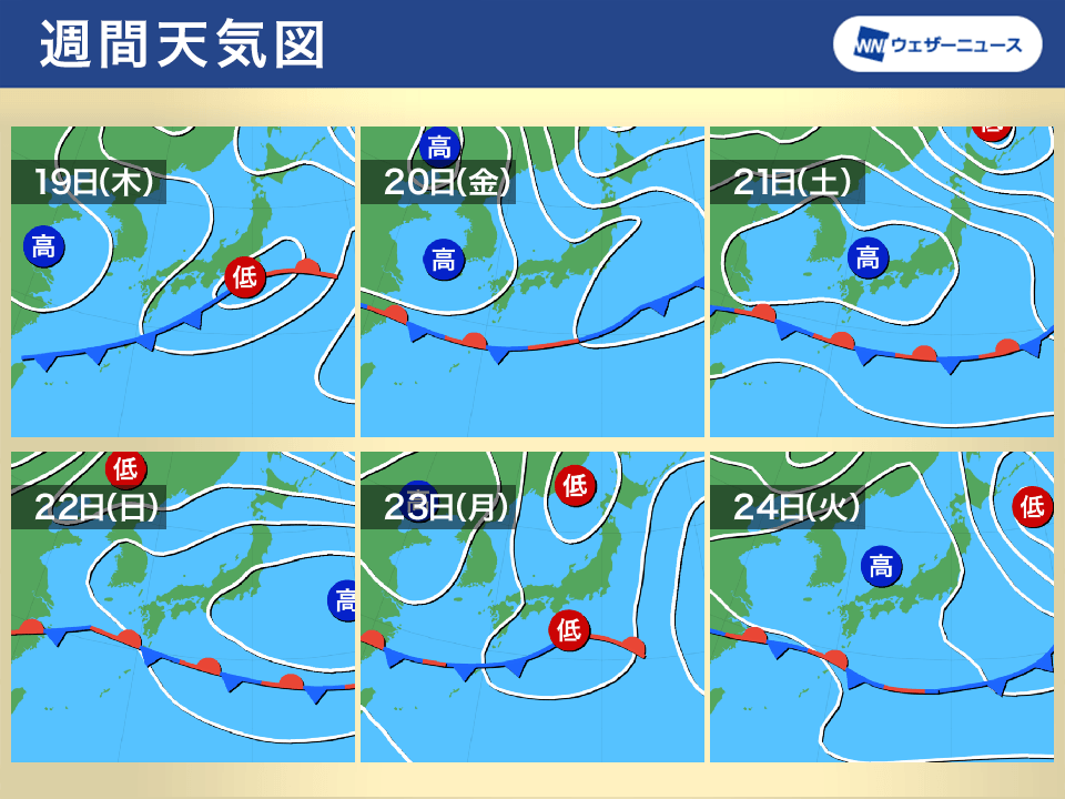 週間天気予報 木曜日にかけて広く雨 三連休は前半ほど日差し届く