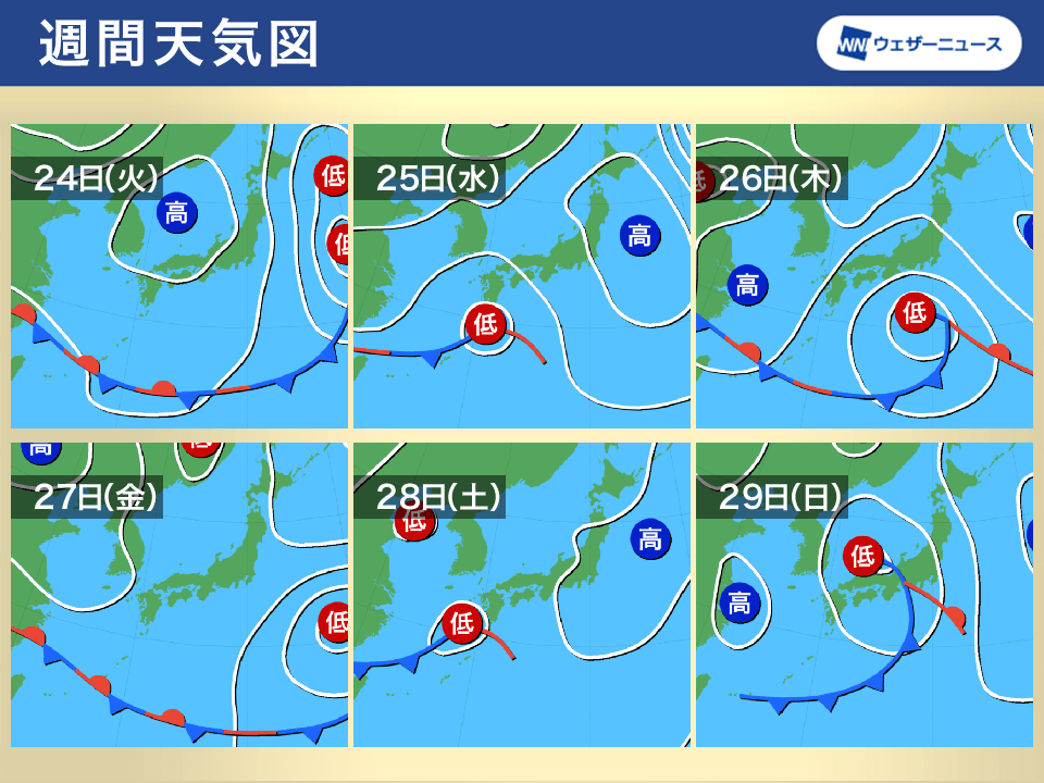 ・週中頃は西から天気下り坂へ