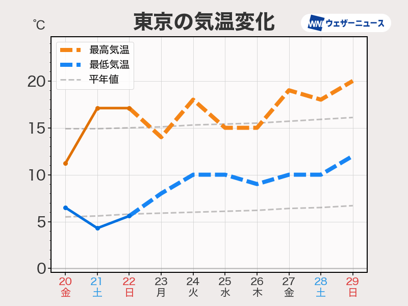 この先一週間の気温は平年並み〜高くなる日が多い見込みです。朝晩はまだヒンヤリとするので、気温差で体調を崩さないよう、服装選びにお気をつけください。