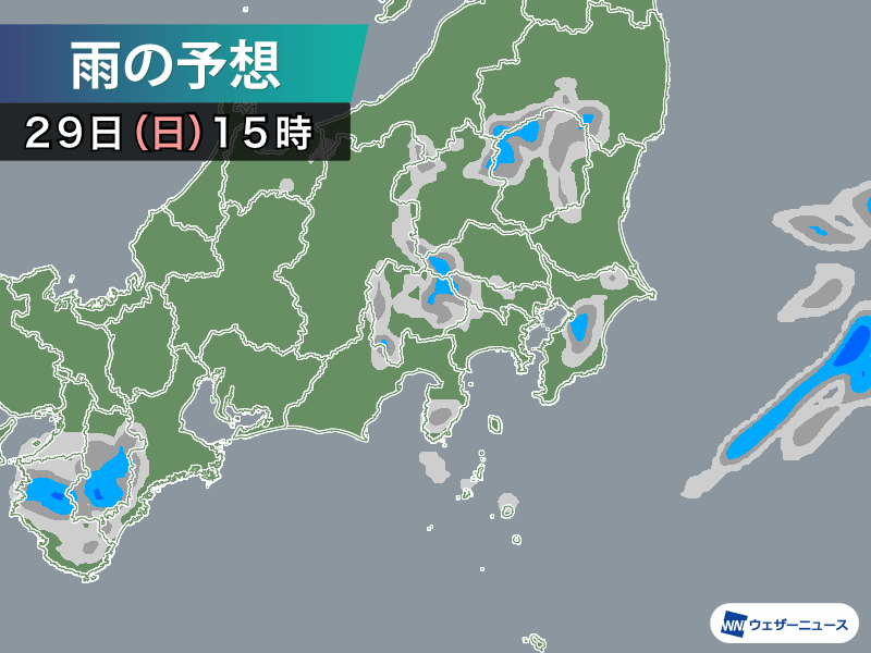 今日29日(日)も春の陽気でお花見日和となりますが、午後は関東や近畿の所々でにわか雨の可能性があり、桜見物の際には念のため注意が必要です。