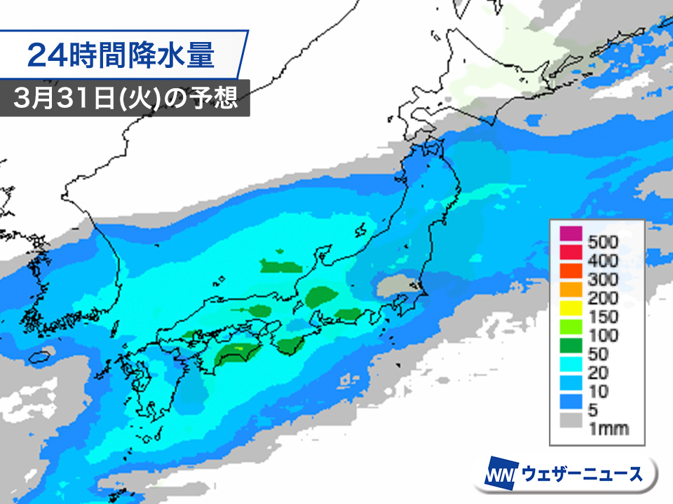 3月終わりは広範囲で雨 お花見は計画的に