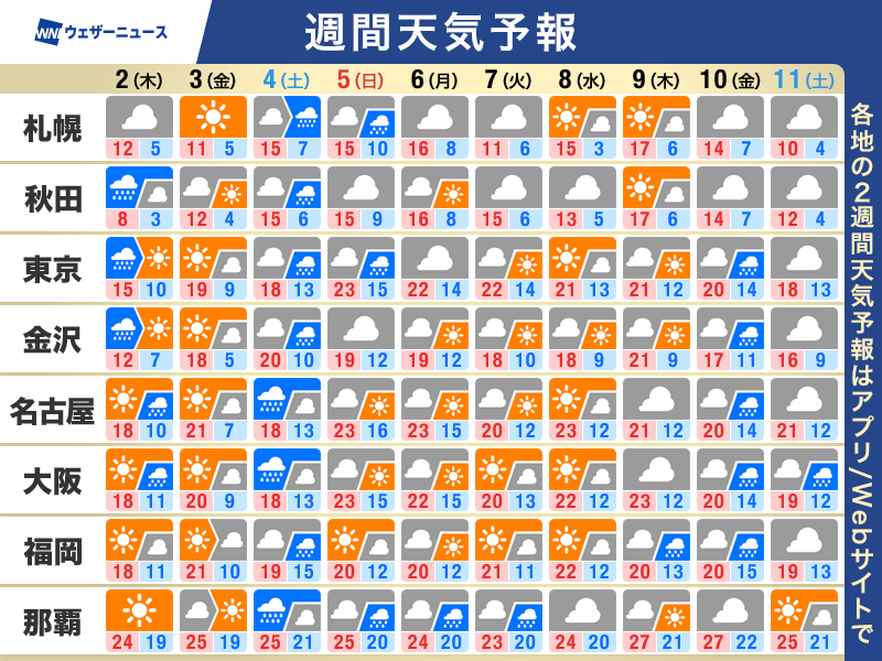 この週後半の晴天は長続きしない予想ですので、洗濯物の外干しや布団干し、お花見、記念写真撮影などはこのタイミングに合わせるのが良さそうです。