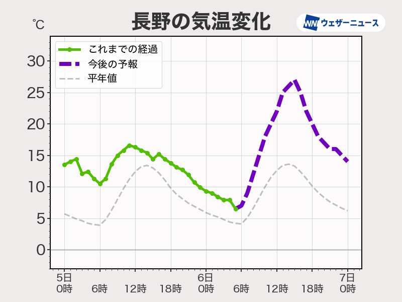 特に、日本海側や内陸部で気温が高く、25℃以上の夏日となる所もあるとみています。寒暖差に注意して服装で上手に調節してください。