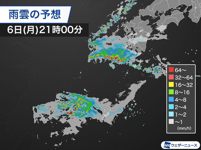 沖縄県や鹿児島県の奄美地方は雨が降りやすく、午後は沖縄本島や奄美地方で雷を伴った強い雨や激しい雨に注意が必要です。