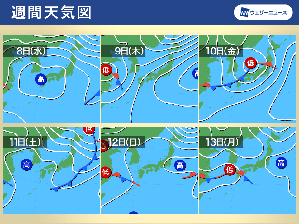 10日(金)は低気圧が発達しながら日本海を進み、北日本へ接近します。北日本から西日本にかけては雨が降り、風も強まって荒れた天気となる可能性があります。