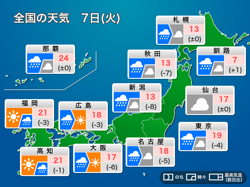 今日4月7日(火)の天気予報