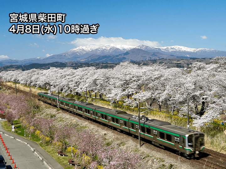 視程が良いこともあり、宮城県の一目千本桜では蔵王連峰とのコラボレーションもみられました。