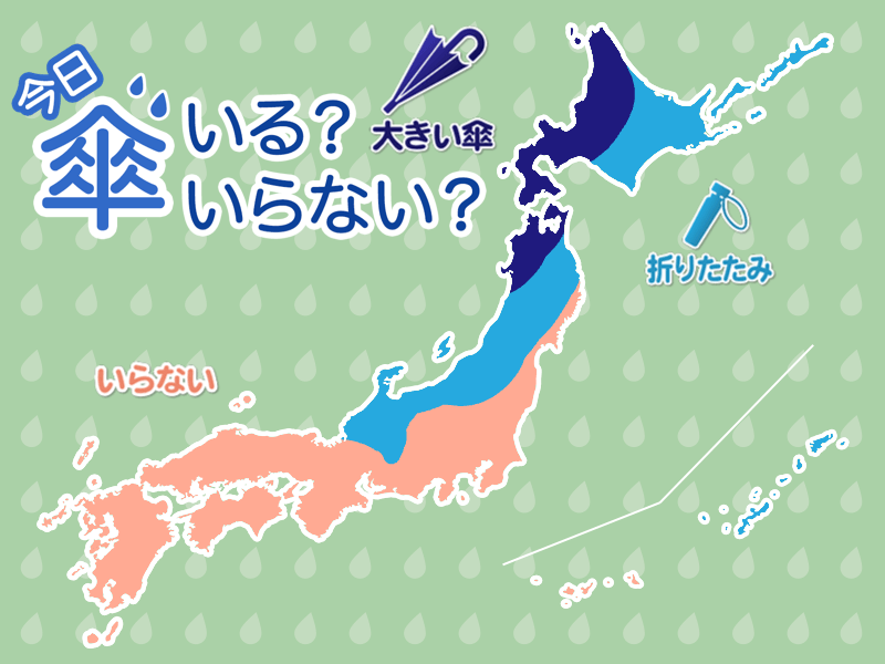東北や北陸では、にわか雨の可能性があります。沿岸部では風が強まることもあるため、お出かけの際は丈夫な折りたたみ傘があると安心です。