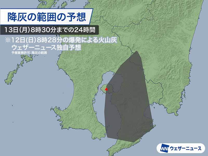 比較的上空の風が弱いため、風下でなくても桜島に近い地域では影響を受ける可能性があります。