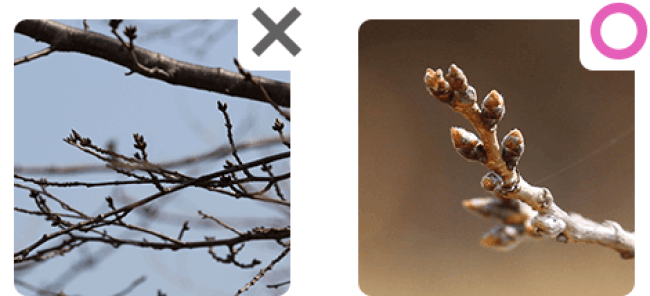ピントが合っていて、つぼみの様子がよくわかる写真を撮影または選択してください